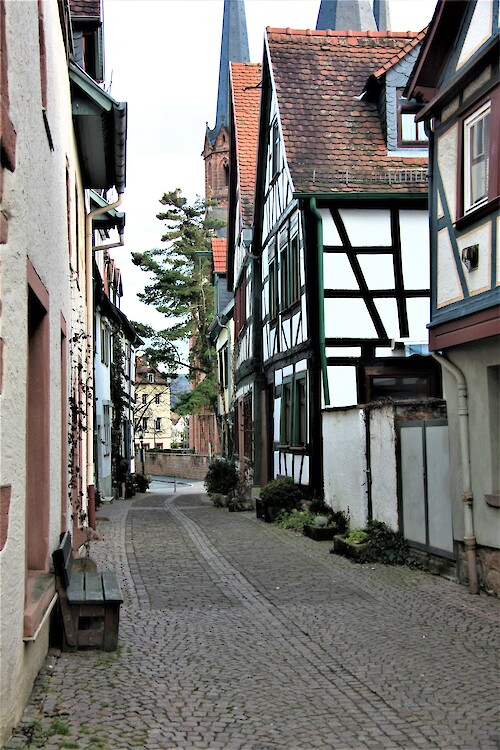 The medieval network of highways had a number of particularly important routes joining cities. The trading route from Frankfurt to Leipzig was one of these. It was part of the main corridor across Europe from Santiago di Compostella in Spain to Kiew. Gelnhausen was the first station on the route from Frankfurt, a day’s journey distant. Although this street was originally wide, in the late Middle Ages buildings had so far encroached on it that Pfarrgasse became the narrowest point on way between the two cities. This point determined the maximum size of loads.