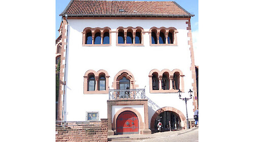 The Romanesque House was built in the last quarter of the 12th century as a typical public building with the ridge of its roof parallel to its façade. The main buildings of castles and palaces were also built in this way. And that includes the imperial palace in Gelnhausen. The house was used as an administrative building and town hall until well into the 16th century. However, when the market hall on the Upper Market Place was redesigned as the town hall, the Romanesque House was sold and was hidden by a half-timbered construction in front. In this way the Romanesque façade was protected. After the half-timbered structure was demolished in the late 19th century, the house revealed itself very much as it had looked 800 years before.