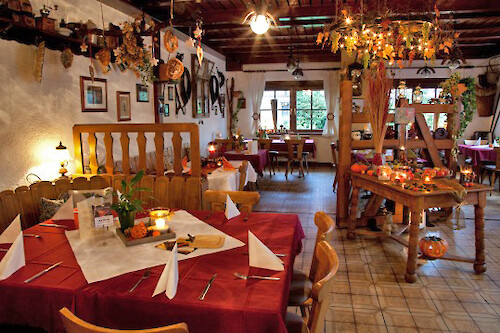 Gemütliche Gasträume, verbunden mit einer ausgezeichneten Küche, haben in unserem Haus bereits seit dem Jahre 1865 Tradition. Die rustikale Bauernstube und im Sommer ein schöner Biergarten. bieten dem Gast ein freundliches Ambiente.